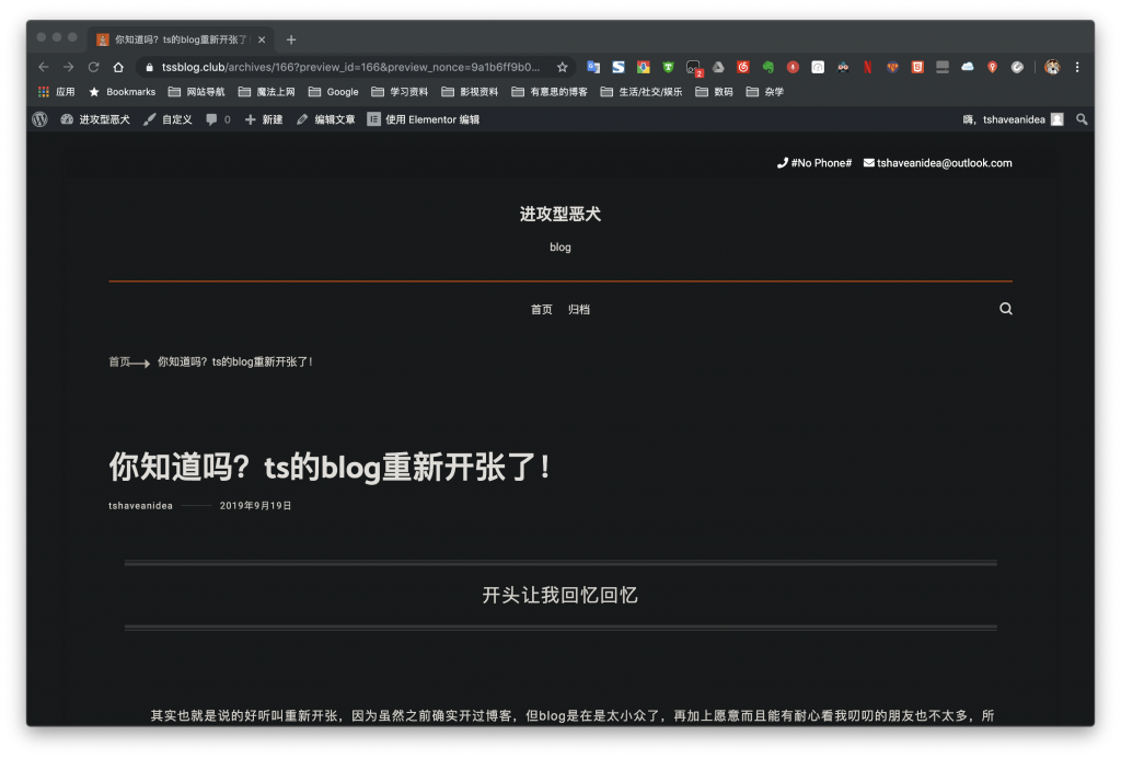 不过目前来说,现在的网站还没到达我的预期,总感觉电脑端的体验不是很好,而手机版的阅读到还可以(以后可能会更换网站的主题)。另外网站内嵌的dark mode也是我想实现的功能之一,只是目前还没有技术条件。