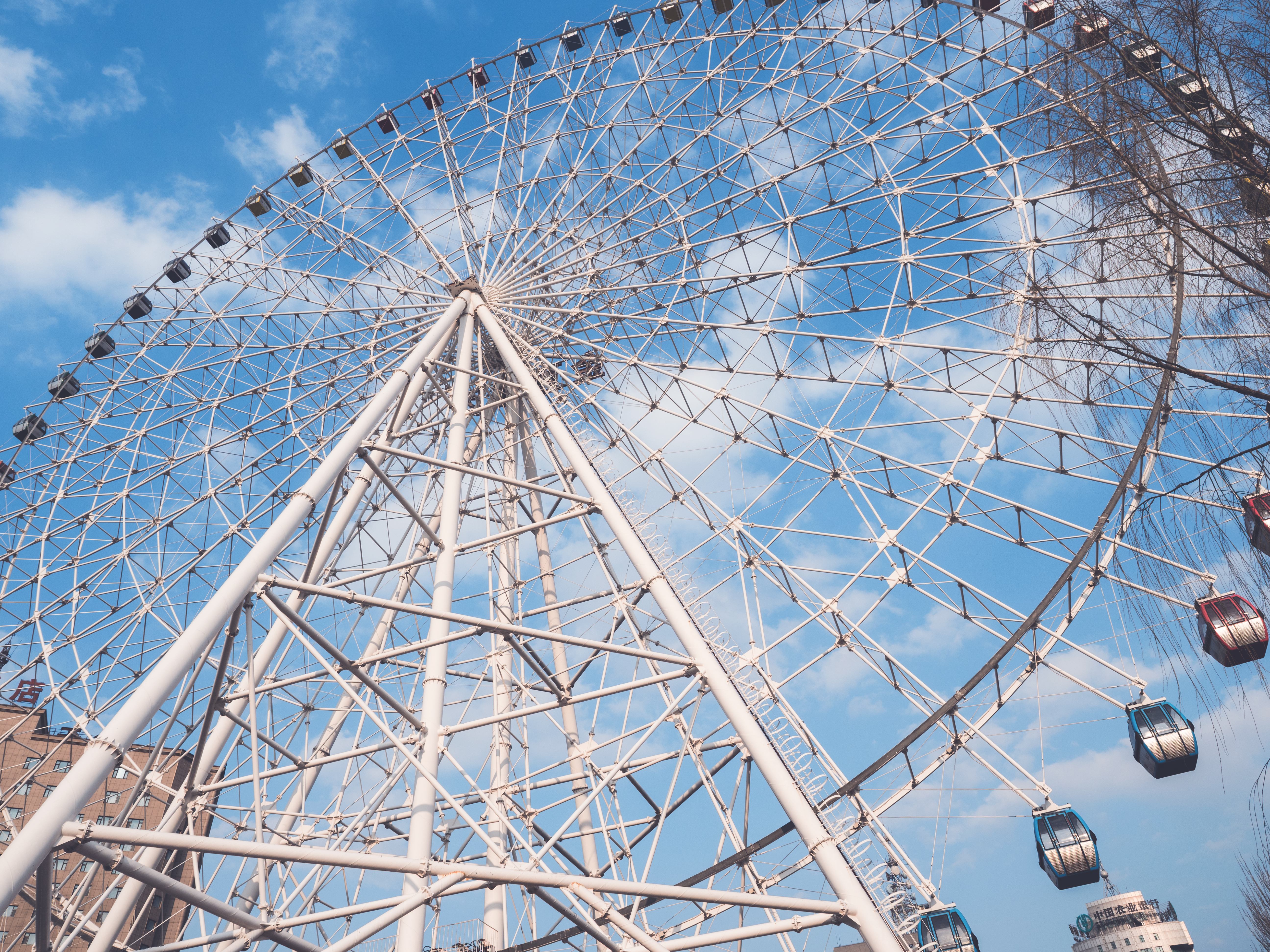 所以,这张照片对应的直方图,最左边没有任何的波形这就代表着图像中没有纯黑的部分,同理,也没有纯白的部分。而靠右边的部分有较大的峰波起伏,这是因为画面中有大量的白云和摩天轮的白色柱子。