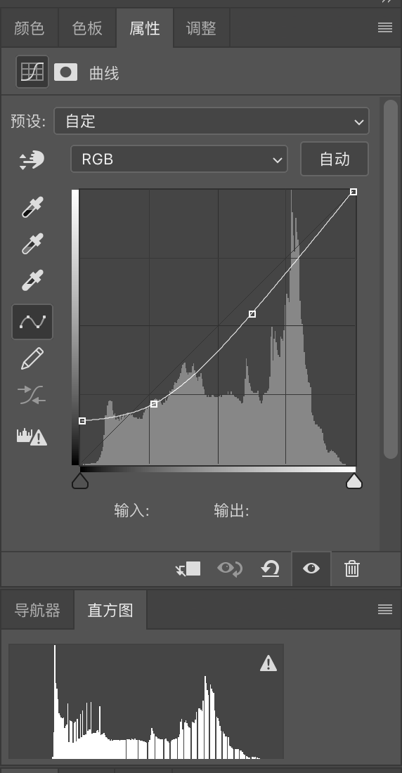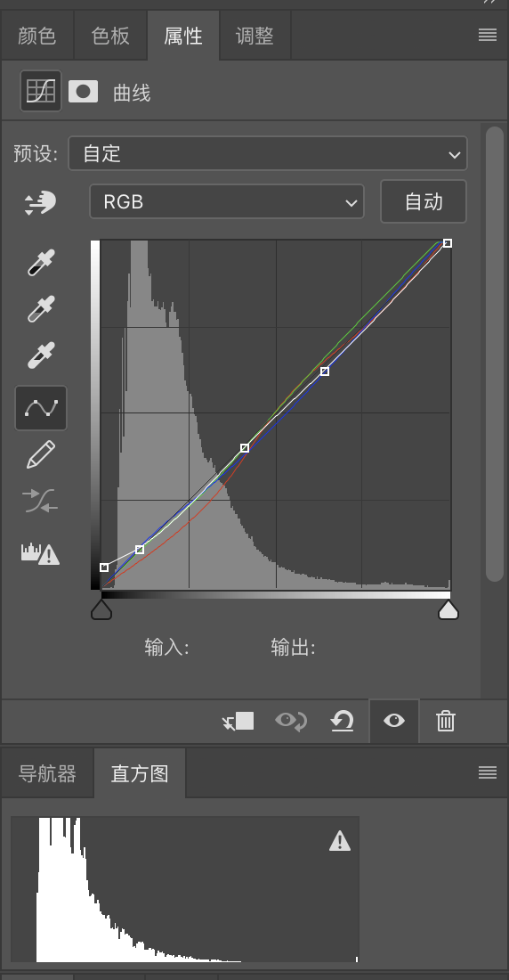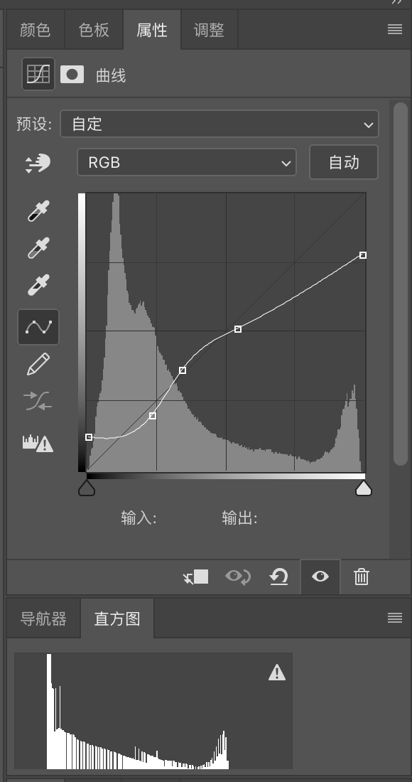 这是曲线工具的属性栏,底部的波峰是那张摩天轮的直方图。