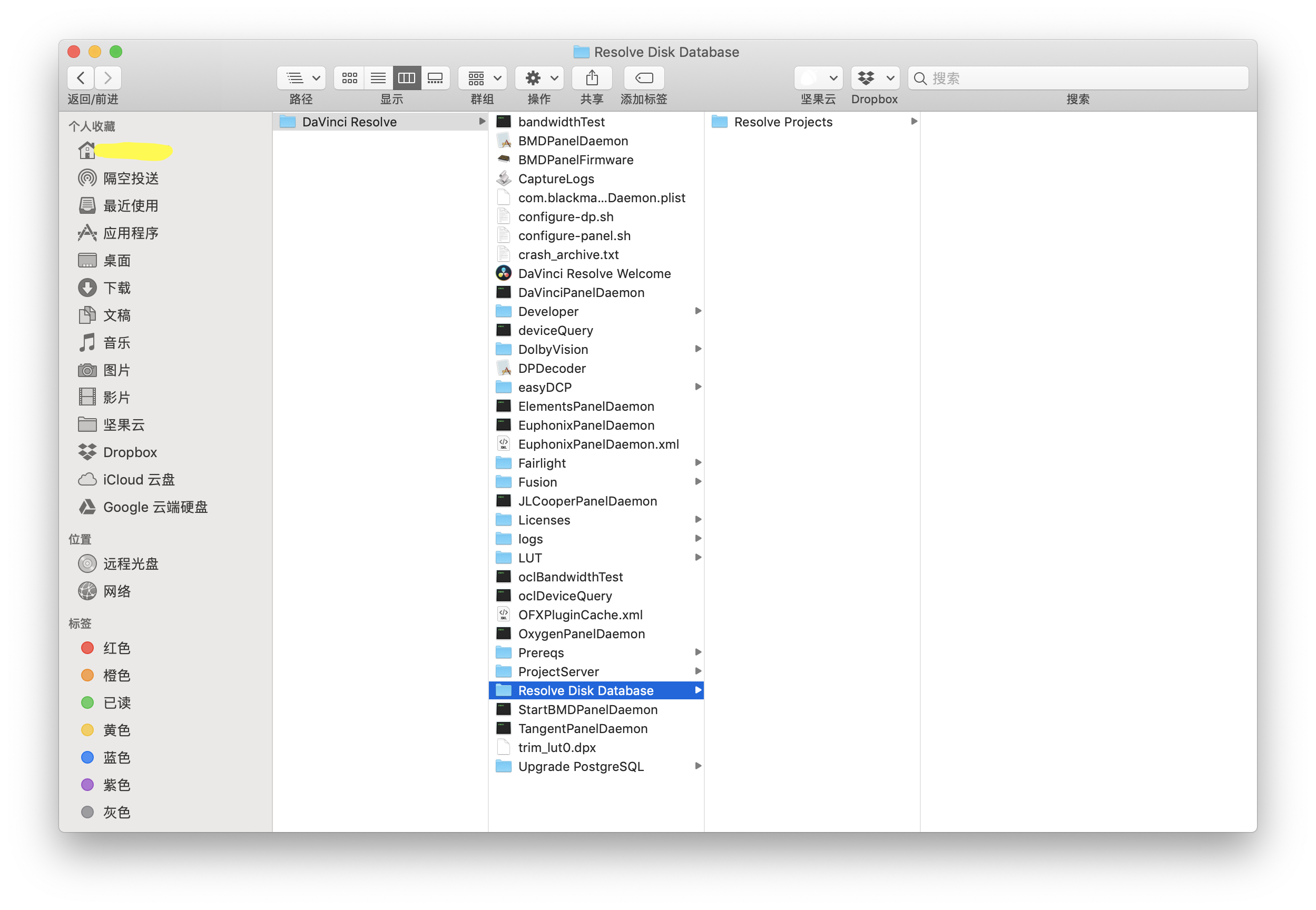最近在学习Davinci Resolve的调色和多人协作,突然想起了达芬奇的项目和保存都是基于数据库的呀,而一般来说都会有一个文件夹专门用于存放这些数据库的,所以用坚果云来专门同步这个文件夹岂不美滋滋?免费又好用。
