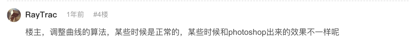 为此,我相信PS中曲线工具的算法应该是根据人的感官特点做了适当的调整的(根据公式修改了RGB的配比)。